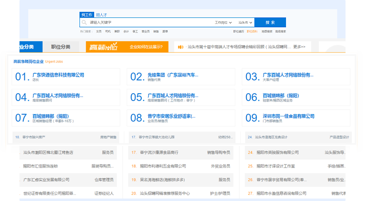 如果您所推廣的職位排名在前21名內(nèi),將會(huì)出現(xiàn)在首頁(yè)急聘職位區(qū)域,坐擁巨大的流量和點(diǎn)擊率,大幅提升您的招聘效果和企業(yè)知名度。