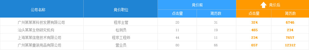 便捷 - 無需整天盯著電腦刷新職位排名,只需用關(guān)鍵詞進(jìn)行職位競價,自助式提升職位排名。